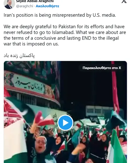 Σε ανάρτησή του στο X, ο Αραγτσί δήλωσε: «Αυτό που μας ενδιαφέρει είναι οι όροι για ένα οριστικό και διαρκές ΤΕΛΟΣ στον παράνομο πόλεμο που μας επιβάλλεται».