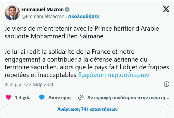 «Η ώρα απαιτεί υπευθυνότητα και αυτοσυγκράτηση, ώστε να δημιουργηθούν οι συνθήκες για την επανέναρξη του διαλόγου, ο οποίος είναι ο μόνος που μπορεί να εγγυηθεί την ειρήνη και την ασφάλεια για όλους. Σε αυτή την κρίσιμη στιγμή, η G7 και το Συμβούλιο Συνεργασίας των Αραβικών Κρατών του Κόλπου πρέπει να ενισχύσουν τον συντονισμό τους. Η Γαλλία και η Σαουδική Αραβία εργάζονται προς αυτή την κατεύθυνση από κοινού», κατέληξε ο Γάλλος πρόεδρος.