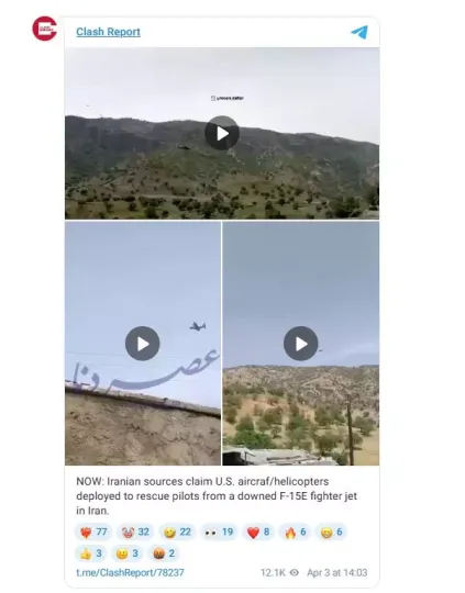 Καθ’ όλη τη διάρκεια του πολέμου, το Ιράν έχει προχωρήσει σε σειρά ισχυρισμών περί κατάρριψης επανδρωμένων εχθρικών αεροσκαφών, οι οποίοι αποδείχθηκαν ανακριβείς. Ωστόσο, είναι η πρώτη φορά που το Ιράν κάλεσε δημόσια, μέσω τηλεόρασης, τους πολίτες να αναζητήσουν έναν φερόμενο ως καταρριφθέντα πιλότο.