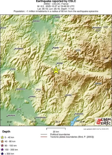 Νωρίτερα, ο δήμαρχος του Σιντίργκι, Σερκάν Σακ, δήλωσε μετά τον σεισμό: «Υπάρχουν κτίρια που έχουν καταρρεύσει στην περιοχή».
