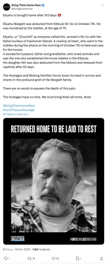 Μετά την επιστροφή της σορού του Μαργκαλίτ, 18 σοροί νεκρών αιχμαλώτων παραμένουν στη Λωρίδα της Γάζας, από τους 28 που κρατούνταν εκεί κατά την έναρξη της τρέχουσας εκεχειρίας.