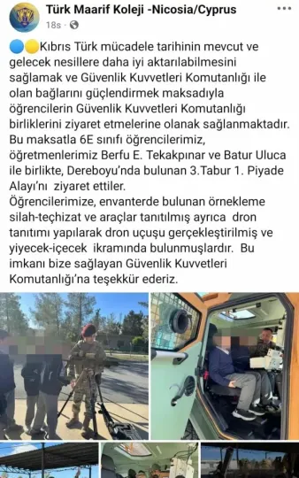 Στην αρχική ανάρτηση, η οποία διαγράφηκε μετά από αντιδράσεις στα μέσα κοινωνικής δικτύωσης, αναφερόταν ότι η επίσκεψη στο 3ο τάγμα του 1ου συντάγματος πεζικού του κατοχικού στρατού στην κατεχόμενη Λευκωσία έγινε για τη «μεταλαμπάδευση της ιστορίας του αγώνα των Τουρκοκυπρίων στις νέες γενιές».