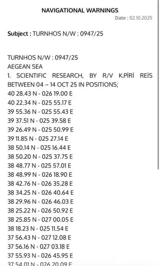 Νέα Navtex για έρευνες του Πίρι Ρέις στην «καρδιά» του Αιγαίου