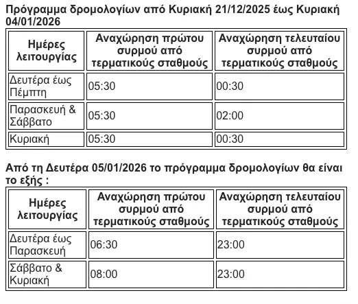 Παρότι οι δοκιμές θα συνεχιστούν και μετά την επαναλειτουργία της βασικής γραμμής, αποφασίστηκε η λειτουργία του μετρό να πραγματοποιείται με πλήρες ωράριο κατά την εορταστική περίοδο, εξασφαλίζοντας καλύτερη εξυπηρέτηση για το επιβατικό κοινό και ομαλή μετακίνηση στην πόλη.