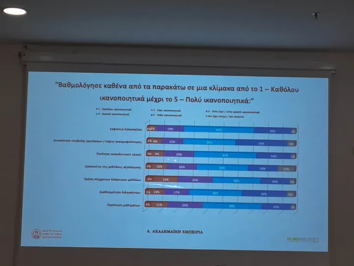 Αναλύοντας τα ευρήματα της έρευνας, η μεγάλη εικόνα είναι ότι οι φοιτήτριες και οι φοιτητές στο ΑΠΘ είναι σε γενικές γραμμές ικανοποιημένοι από την ακαδημαϊκή εμπειρία που προσφέρει το συγκεκριμένο εκπαιδευτικό ίδρυμα.