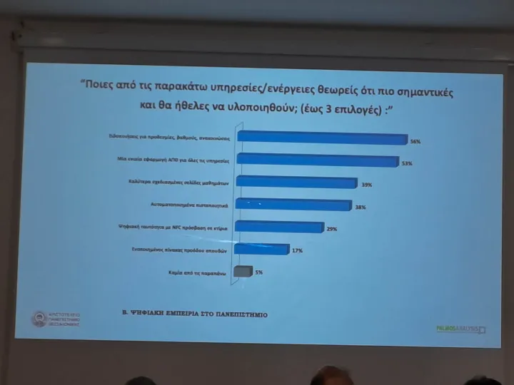 Η δημιουργία εφαρμογής για την αμεσότερη ενημέρωση των φοιτητών αποτελεί την πιο δημοφιλή επιλογή των ξένων φοιτητών, ενώ μόλις το 6% εξ αυτών δεν θεωρεί ότι η Θεσσαλονίκη είναι ασφαλής πόλη.