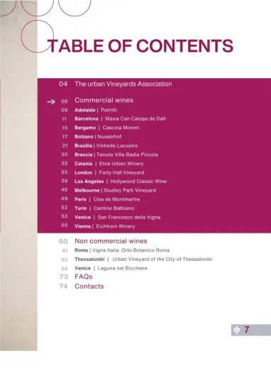 Ο κατάλογος αστικών οίνων του δικτύου, δημιουργήθηκε με πρωτοβουλία του δικτύου αλλά και των μελών του, για να δώσει έμφαση στα παραπάνω και για να παρουσιάζει μια ολοκληρωμένη επιλογή κρασιών που παράγονται από αστικούς αμπελώνες-μέλη, συμπεριλαμβανομένων και μη εμπορικών κρασιών που δημιουργούνται αποκλειστικά για πολιτιστικούς ή κοινωνικούς σκοπούς. Ένας κατάλογος ανοιχτός στο διαδίκτυο για να ενημερώνεται το κοινό και να μπορεί να επικοινωνήσει με το δυναμικό των αστικών αμπελώνων.
