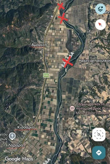 Χθες το απόγευμα, ο Δήμος Σουφλίου έδωσε στη δημοσιότητα τον παρακάτω χάρτη της περιοχής με τα σπασμένα αναχώματα, ενημερώνοντας τους πολίτες πως «Κάθε κίνηση στις περιοχές αυτές απαγορεύεται».