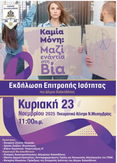 Ο δήμος Χαλκηδόνος καλεί όλους τους πολίτες να συμμετάσχουν και να στηρίξουν την κοινή προσπάθεια για μια κοινωνία χωρίς βία, με σεβασμό, ισότητα και ασφάλεια για όλες και όλους.