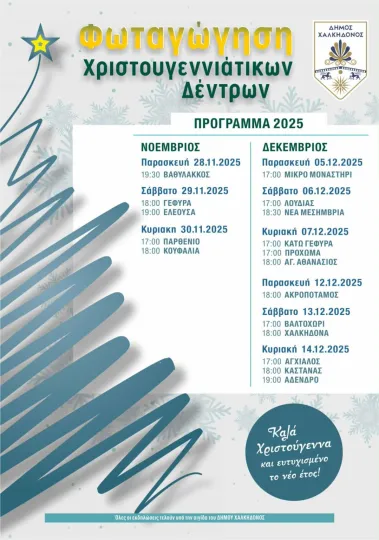 Οι εκδηλώσεις θα πραγματοποιηθούν από τις 28 Νοεμβρίου έως τις 14 Δεκεμβρίου 2025, σε όλες τις Δημοτικές Κοινότητες του Δήμου.