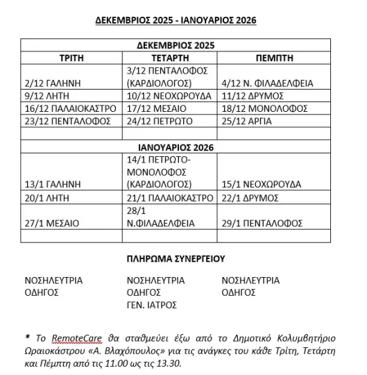 Το πρόγραμμα επισκέψεων για τους μήνες Δεκέμβριο 2025 και Ιανουάριο 2026