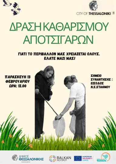 Με ώρα συνάντησης τις 12:00 μμ και σημείο εκκίνησης την είσοδο του Νέου Σιδηροδρομικού Σταθμού Θεσσαλονίκης, η δράση στοχεύει στην απομάκρυνση αποτσίγαρων από δρόμους και πεζοδρόμια και είναι ανοιχτή σε όλους τους πολίτες που θέλουν να συμβάλλουν σε μια πιο καθαρή και φιλική πόλη.