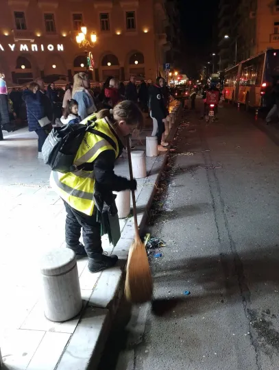 Όπως σημείωσε ο αντιδήμαρχος, μετά την πορεία των καρναβαλιστών ακολούθησε άμεσα το μηχανοκίνητο και πεζό τμήμα σαρώματος του δήμου Θεσσαλονίκης, ξεκινώντας μια συντονισμένη επιχείρηση απομάκρυνσης απορριμμάτων από το κέντρο της πόλης.