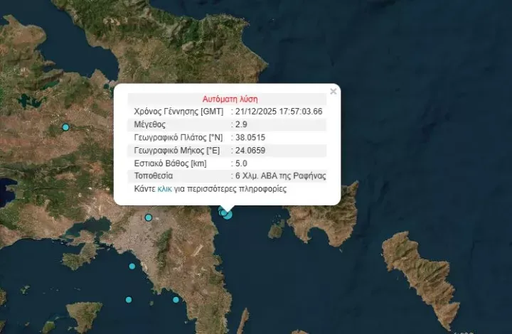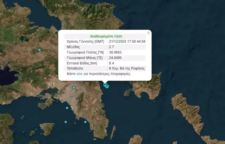 Οι δονήσεις έγιναν αισθητές στη Νοτιοανατολική Αττική.