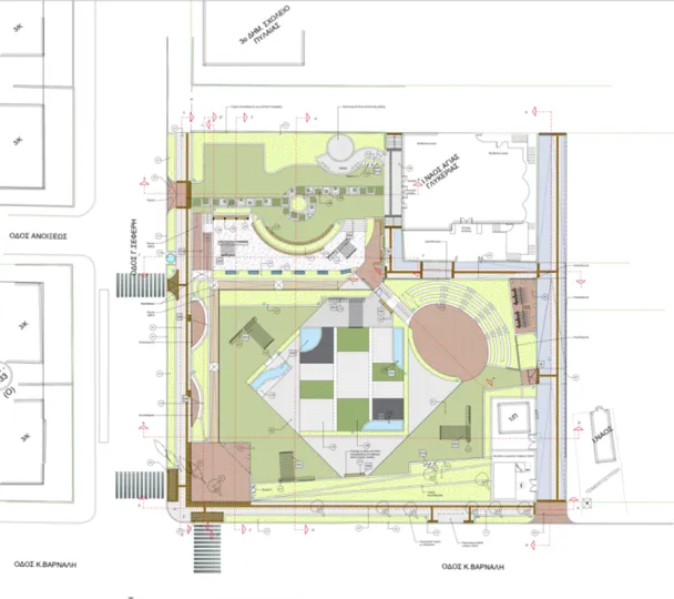 Εντάσσεται, στο πλαίσιο ολοκληρωμένου σχεδιασμού των κεντρικών κοινόχρηστων χώρων της Πολεοδομικής Ενότητας 4 της Πυλαίας με γνώμονα την αύξηση του αριθμού των επιφανειών που καταλαμβάνει το πράσινο (δένδρα) & οι φυτεύσεις, την ενίσχυση της διαπερατότητας των εδαφών με σκοπό την αναβάθμιση του αστικού περιβάλλοντος και την βελτίωση του μικροκλίματος της περιοχής.