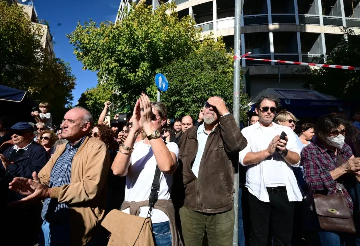 Μεγάλο πλήθος από ανθρώπους κάθε ηλικιών που είχε προσέλθει για να προσκυνήσει τη σορό, η οποία εξετίθετο στο παρεκκλήσι της Μητρόπολης έως τις 11:30 και είχε συγκεντρωθεί κατόπιν στην πλατεία Μητροπόλεως, με σκυμμένο κεφάλι και περισσή συγκίνηση, χαιρέτισε με χειροκροτήματα και επευφημίες το φέρετρο, στην πορεία του προς το εσωτερικό του κυρίως ναού, όπου θα ψάλλει η εξόδιος δοξολογία.