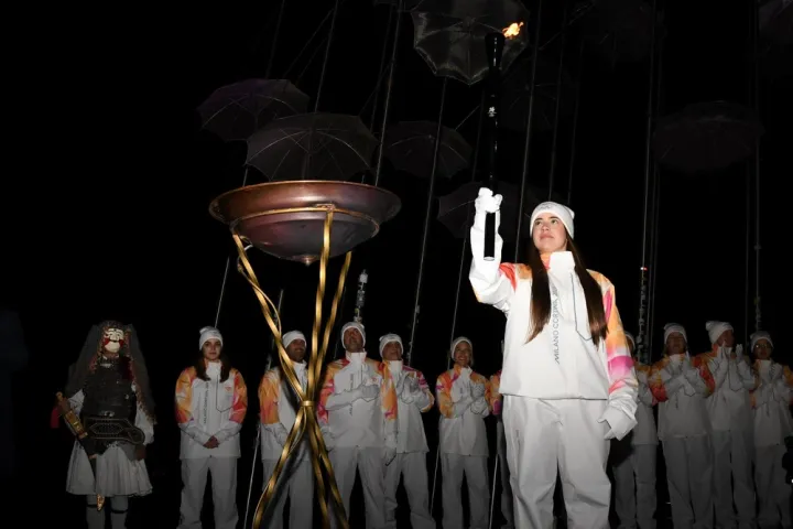 Ακολούθησε ο χαιρετισμός της Ιταλίδας εκπροσώπου της Οργανωτικής Επιτροπής Χειμερινών Ολυμπιακών Αγώνων «Μιλάνο - Κορτίνα 2026», ασημένιας και χάλκινης Ολυμπιονίκη της ρυθμικής γυμναστικής, Elisa Santoni, η οποία δήλωσε πολύ συγκινημένη και συναισθηματικά φορτισμένη ως μέλος της Ιταλικής Ολυμπιακής Επιτροπής. «Νιώθω ιδιαίτερη τιμή που βρίσκομαι εδώ. Είμαι στενά συνδεδεμένη με την Ελλάδα γιατί ως αθλήτρια της ρυθμικής γυμναστικής κατέκτησα το ασημένιο μετάλλιο στους Ολυμπιακούς Αγώνες της Αθήνας το 2004. Άρα η Ελλάδα είναι μια χώρα με ιδιαίτερο συμβολισμό και σημασία για μένα», είπε.