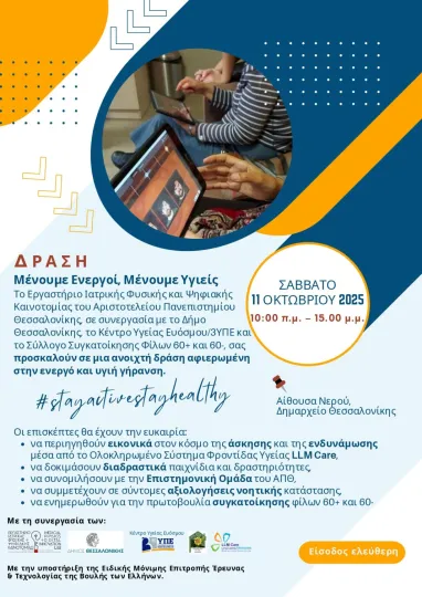 Οι επισκέπτες θα έχουν την ευκαιρία να περιηγηθούν εικονικά στον κόσμο της άσκησης και της ενδυνάμωσης μέσα από το Ολοκληρωμένο Σύστημα Φροντίδας Υγείας LLM Care, να συμμετάσχουν σε διαδραστικά παιχνίδια και δραστηριότητες, να συνομιλήσουν με την Επιστημονική Ομάδα του ΑΠΘ, να λάβουν μέρος σε σύντομες αξιολογήσεις νοητικής κατάστασης και να ενημερωθούν για την πρωτοβουλία Συγκατοίκησης Φίλων 60+ και 60-.