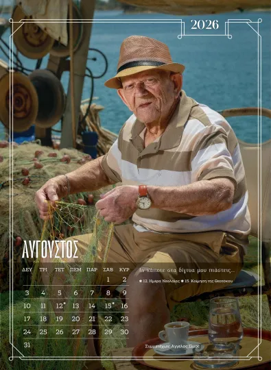 «Συμμετείχαν 13 άτομα, είναι 12 μήνες και στην τελευταία σελίδα έχουμε δύο φίλες που δημιουργήθηκε η φιλία τους εδώ μέσα. Έχουν γράψει και ένα ποιηματάκι στο τέλος για τη φιλία. Κυρίως το κάναμε με βάση τον μήνα που ήταν ο καθένας. Τον Αύγουστο, είναι ένα ηλικιωμένος που ποζάρει με τα δίχτυα στο λιμάνι. Μία άλλη κυρία, τον Σεπτέμβριο είναι σε πηγές που έχουμε εδώ. Τον Μάιο έχουμε μία κυρία μέσα στα λουλούδια και φοράει και αντίστοιχα λουλουδάτα ρούχα. Είναι πολύ ενθουσιασμένοι και οι ίδιοι γιατί τώρα που κυκλοφόρησε, τους παίρνουν τηλέφωνο συγγενείς, φίλοι που τους είδανε στο internet. Γιατί είχαμε και σε αυτούς λίγο “κρυφό” το τελικό αποτέλεσμα, το οποίο τους ενθουσίασε πιο πολύ», υποστήριξε ο κ. Νασσόπουλος.