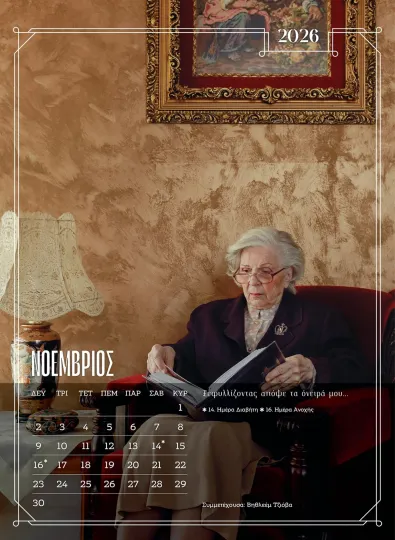 Κάθε σελίδα και μία φράση ζωής. Κάθε φωτογραφία και μία στιγμή με έναν ηλικιωμένο στους 12 μήνες του χρόνου και στη 13η σελίδα μία δυνατή φιλία που έγινε και εξελίχθηκε μέσα στη δομή. Δύο καλές φίλες -πλέον- ποζάρουν κοιτώντας η μία την άλλη και στέλνουν δυνατό μήνυμα για το βάθος και την ουσία που μπορεί να δημιουργηθεί ανάμεσα σε δύο ανθρώπους, μέσα σε ένα γηροκομείο.