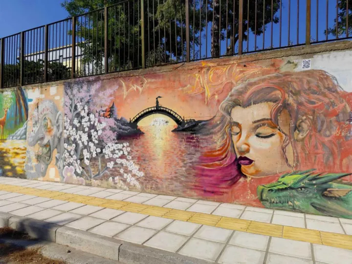 «Υπήρχε ένας μεγάλος τοίχος με γκράφιτι. Στρώσαμε καινούργιες πλάκες, βάλαμε οδηγούς διέλευσης τυφλών και ράμπες ΑμεΑ, και ανανεώσαμε τα σχέδια του γκράφιτι. Δημιουργήσαμε έναν πολύ ευχάριστο πεζόδρομο που πηγαίνουν τα παιδιά κάθε μέρα από το σπίτι τους στο νηπιαγωγείο καιπίσω», αναφέρει ο αντιδήμαρχος, τονίζοντας πως και εκεί υπάρχει QR code που οδηγεί στο προφίλ του Banksy, σε ένα πείραμα πολιτιστικής διάδρασης.