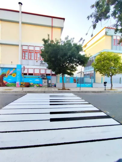 Η μουσική διάβαση βρίσκεται στη συμβολή των οδών Αρκαδίου και Αρετής, μπροστά στο 5ο και 12ο Δημοτικό Σχολείο Πολίχνης και σχεδιάστηκε από τη δημοτική αρχή με στόχο να ενισχύσει την ασφάλεια των μαθητών και να ενεργοποιήσει τη φαντασία τους.
