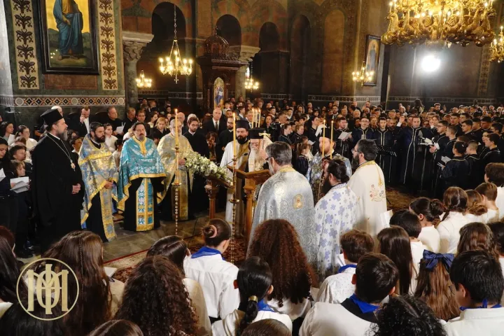 Απευθυνόμενος, μάλιστα, με ιδιαίτερη πατρική στοργή στους μαθητές και τις μαθήτριες, εξέφρασε την χαρά του για την παρουσία του ανάμεσά τους στην Ακολουθία των Χαιρετισμών. Όπως τόνισε χαρακτηριστικά, «στην Ακολουθία αυτή, κατά την οποία οι φωνές των μαθητών και νέων παιδιών, υψώθηκαν προς την μητέρα όλων των χριστιανών, την Υπεραγία Θεοτόκο… η Παναγία μας, γίνεται η γέφυρα μεταξύ ουρανού και γης, φέροντας στον κόσμο τον Ιησού Χριστό». Απευθυνόμενος, μάλιστα, στα ίδια τα παιδιά, ο Μακαριώτατος είπε: «Εσείς που απόψε ψάλλετε τους Χαιρετισμούς, δεν μας προσφέρετε απλώς μία ωραία μουσική στιγμή. Εσείς τα ίδια γίνεστε φανέρωση της νέας κτίσης, που μας προσφέρει ο Χριστός. Όταν οι παιδικές και νεανικές φωνές σας υμνούν την Παναγία, όταν η καρδιά σας συμμετέχει στην προσευχή της Εκκλησίας, τότε ο κόσμος αναπνέει διαφορετικά. Η ελπίδα παίρνει σάρκα και οστά. Γιατί αυτή η νέα κτίση δεν είναι θεωρία. Είναι τρόπος ζωής. Είναι η αγάπη που νικά την εγωκεντρικότητα. Είναι η συγχώρηση που θεραπεύει πληγές. Είναι η αλήθεια που φωτίζει τη σκέψη. Είναι η καθαρότητα που ελευθερώνει την ψυχή. Και εσείς, μέσα στα σχολεία σας, στις οικογένειές σας, στις φιλίες σας, μπορείτε να γίνετε φορείς αυτής της ανακαινίσεως. Με την καλοσύνη σας. Με τον σεβασμό σας. Με τη διάθεσή σας να δημιουργήσετε και όχι να καταστρέψετε», ενώ τα προσκάλεσε να αφήσουν «το «Χαίρε» να γίνει χαρά που μεταμορφώνει τον κόσμο. Γιατί ο Χριστός μάς κάνει αληθινά καινούργιους και εσείς έχετε την ευθύνη να γίνετε οδηγοί όλων μας, σε αυτή τη νέα ζωή».