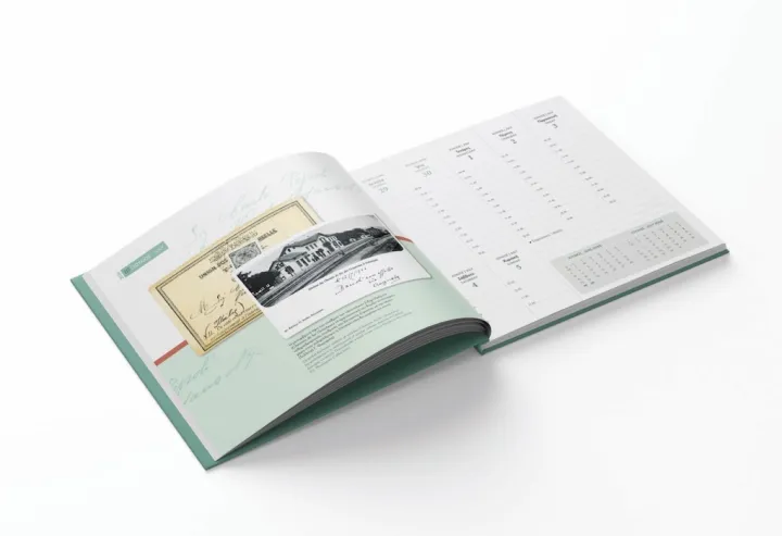Το περιεχόμενο του ημερολογίου είναι δίγλωσσο (ελληνικά-αγγλικά) και το φωτογραφικό υλικό συνοδεύεται από κείμενα των Γιάννη Επαμεινώνδα, αρχιτέκτονα, ιστορικού, ερευνητή, Γιώργου Θωμαρέη, πολιτικού μηχανικού, συλλέκτη, Ευάγγελου Κανσίζογλου, ιστορικού και ερευνητή του ΙΜΜΑ, Βασίλη Κολώνα, ομότιμου καθηγητή του Τμήματος Αρχιτεκτόνων του Πανεπιστημίου Θεσσαλίας, Θάλειας Μαντοπούλου-Παναγιωτοπούλου, ομότιμης καθηγήτριας του Τμήματος Εικαστικών και Εφαρμοσμένων Τεχνών της Σχολής Καλών Τεχνών του ΑΠΘ, Σταυρούλας Μαυρογένη, καθηγήτριας του Τμήματος Βαλκανικών, Σλαβικών και Ανατολικών Σπουδών ΠΑΜΑΚ - διευθύντριας του ΚΕΜΙΤ στο ΙΜΜΑ, Γιάννη Μέγα, πολιτικού μηχανικού, συγγραφέα και του δρ. Κωνσταντίνου Σ. Παπανικολάου, ιστορικού και επιστημονικού συνεργάτη του ΙΜΜΑ.