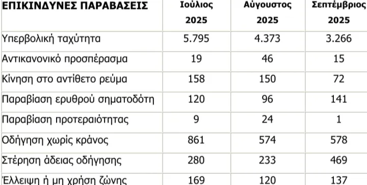 Στο πλαίσιο αυτό, κατά το τρίτο τρίμηνο του 2025 βεβαιώθηκαν παραβάσεις που αφορούν σε: