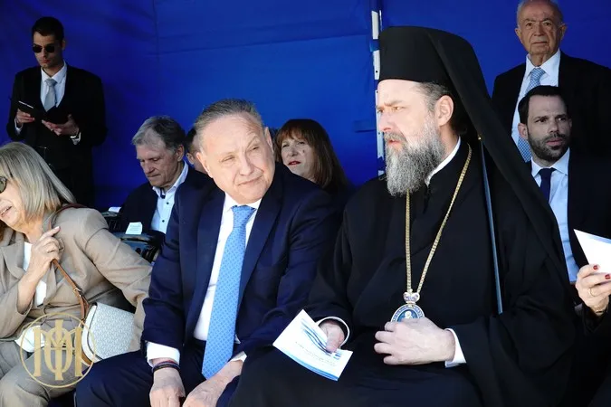 Ακολούθως, ο Παναγιώτατος και οι αρχές του τόπου μετέβησαν στην παραλιακή λεωφόρο, όπου παρακολούθησαν την παρέλαση μαθητών των Σχολείων της πόλης μας, μελών Πολιτιστικών Συλλόγων και τμημάτων μαθητών της Στρατιωτικής Σχολής Αξιωματικών Σωμάτων (Σ.Σ.Α.Σ.).
