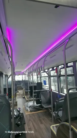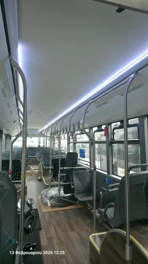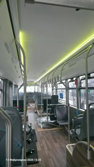 «Smart lighting management: Τα 100 ολοκαίνουρια ηλεκτρικά λεωφορεία του ΚΤΕΛ Θεσσαλονίκης, αλλάζουν αυτόματα εσωτερικό φωτισμό, ανάλογα με τις καιρικές συνθήκες και τον φυσικό φωτισμό.