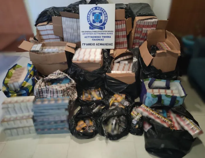 Ακολούθησαν έρευνες σε οικία του συλληφθέντα, αλλά και σε αποθηκευτικό χώρο που χρησιμοποιούσε ως «καβάτζα», όπου οι αστυνομικοί βρήκαν και κατέσχεσαν συνολικά 4.950 πακέτα τσιγάρων, δηλαδή 99.000 τεμάχια, καθώς και 213 συσκευασίες καπνού βάρους άνω των 10,5 κιλών.