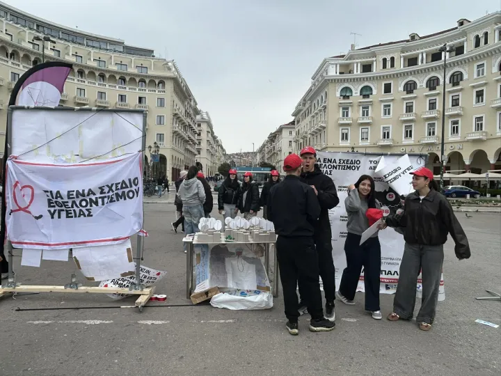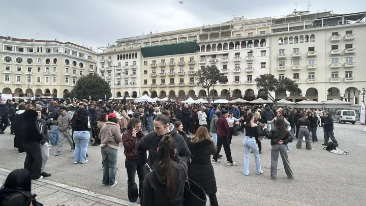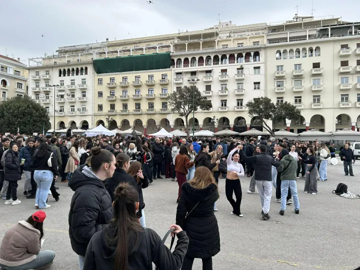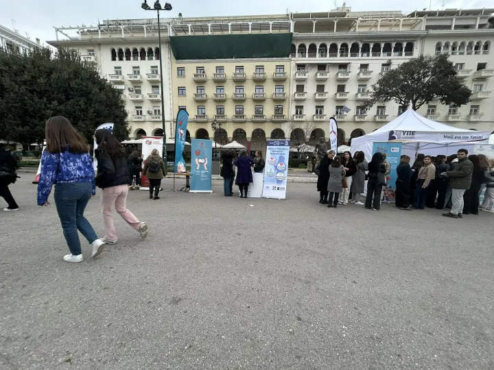 Από νωρίς το πρωί, η πλατεία Αριστοτέλους γέμισε ζωντάνια, καθώς μαθητές και εκπαιδευτικοί συμμετέχουν σε δράσεις για την κοινωνική προσφορά.