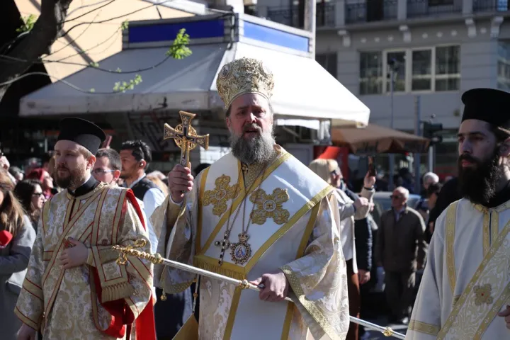 Μυροφόρες έραιναν τον Επιτάφιο με άνθη, ενώ αξιωματικοί του Ναυτικού τον μετέφεραν, συνοδευόμενοι από προσκόπους και μέλη του Ερυθρού Σταυρού. Πλήθος πιστών ακολούθησε την πομπή, με τις καμπάνες να ηχούν πένθιμα σε όλο το κέντρο.
