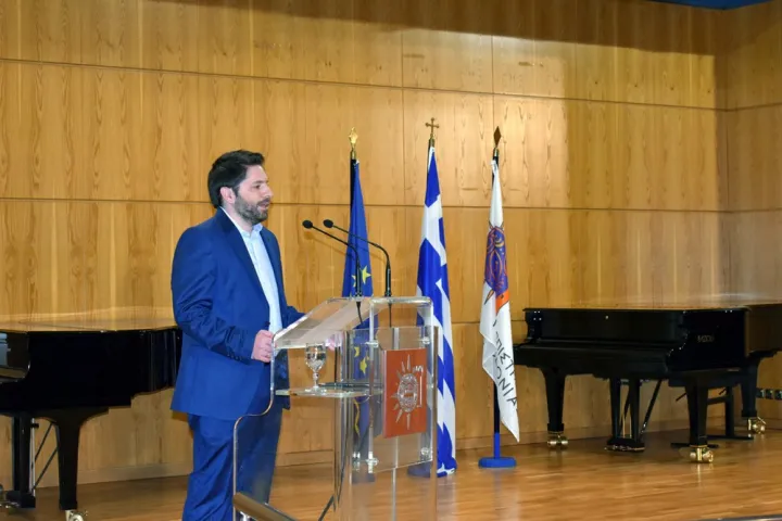 Στη συνέχεια, τον πανηγυρικό της ημέρας εκφώνησε ο Θεοχάρης Αναγνωστόπουλος, επισκέπτης επίκουρος καθηγητής στην Επώνυμη Έδρα Διδασκαλίας και Έρευνας στις Μικρασιατικές Σπουδές, του Τμήματος Βαλκανικών, Σλαβικών και Ανατολικών Σπουδών της Σχολής Οικονομικών και Περιφερειακών Σπουδών του Πανεπιστημίου Μακεδονίας.