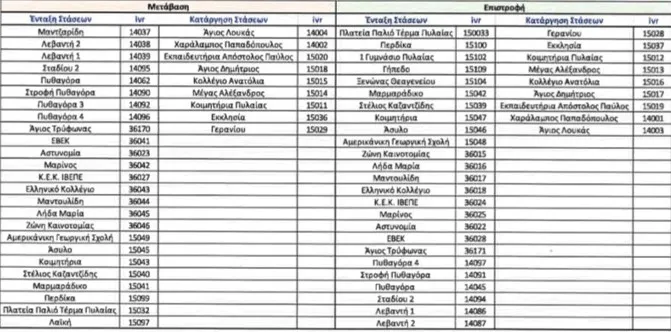 Ταυτόχρονα αλλάζουν ή καταργούνται προσωρινά στάσεις κατά τη διάρκεια του καθολικού αποκλεισμού της κυκλοφορίας των οχημάτων όπως περιγράφονται στον παρακάτω πίνακα: