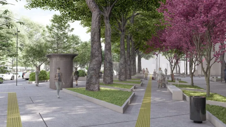 Σχεδιαστικά, προτεραιότητα δίνεται στους πεζούς και στο πράσινο, με παρεμβάσεις όπως:
