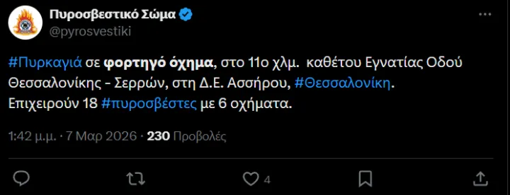 Στο σημείο έσπευσαν 18 πυροσβέστες με έξι πυροσβεστικά οχήματα, οι οποίοι επιχειρούν για την κατάσβεση της πυρκαγιάς.