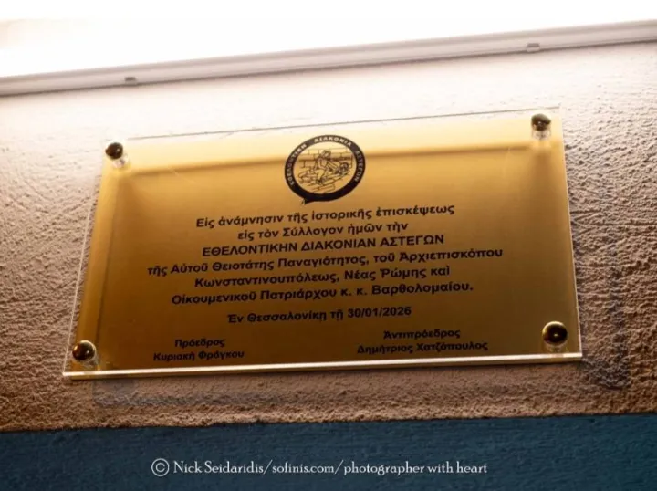 Στα γραφεία της Εθελοντικής Διακονίας Αστέγων, τοποθετήθηκε χρυσή πλάκα, ως ανάμνηση της ιστορικής επίσκεψης του Οικουμενικού Πατριάρχη Βαρθολομαίου.