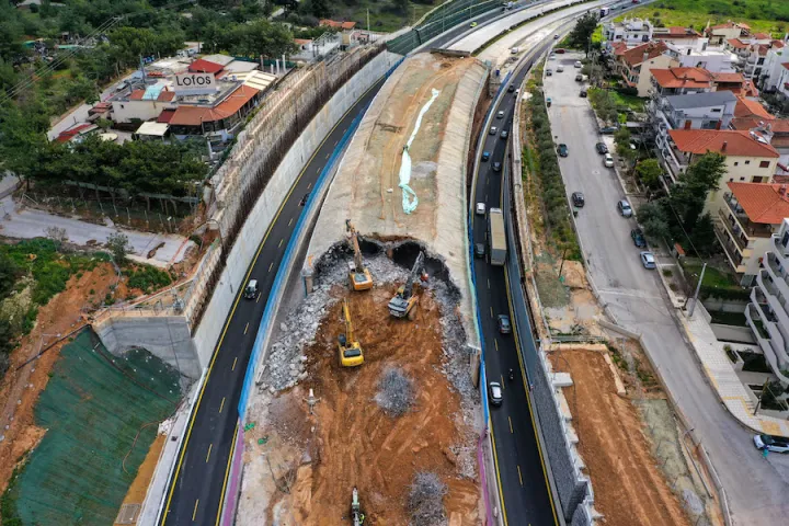 Συνεχίζονται οι εργασίες κατεδάφισης του δίδυμου τούνελ της Περιφερειακής Οδού της Θεσσαλονίκης, στο ύψος των Κωνσταντινουπολίτικων, στο πλαίσιο των εργασιών για την κατασκευή του Flyover.