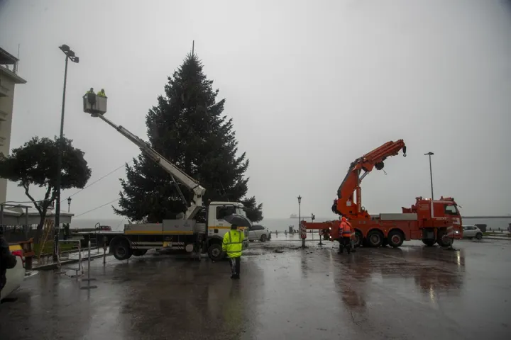 Οι εργασίες του δήμου Θεσσαλονίκης για τον γιορτινό διάκοσμο στην πλατεία Αριστοτέλους ξεκίνησαν από χθες μετά την άφιξη του 18 μέτρων έλατου από το Παλαιοχώρι Χαλκιδικής.