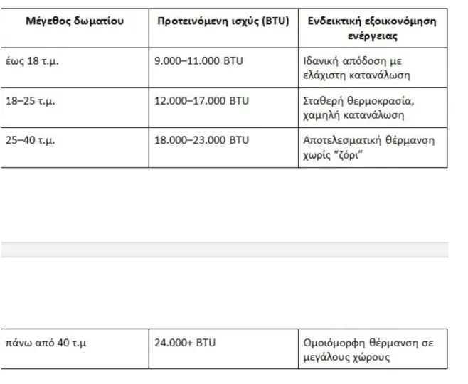 Επομένως, μια καλή έρευνα για να δεις ποιο κλιματιστικό ανταποκρίνεται στις ανάγκες σου, κρίνεται απαραίτητη. Για να μην ψάχνεις δεξιά και αριστερά, δες το παρακάτω πινακάκι για να σε κατευθύνει. Αν θέλεις να είσαι πραγματικά σίγουρος, σκέψου σε ποιο δωμάτιο περνάς περισσότερο χρόνο τον χειμώνα; Από εκεί ξεκίνα.