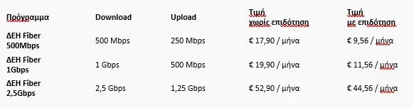 Οι νέες τιμές ΔΕΗ Fiber με Gigabit Voucher