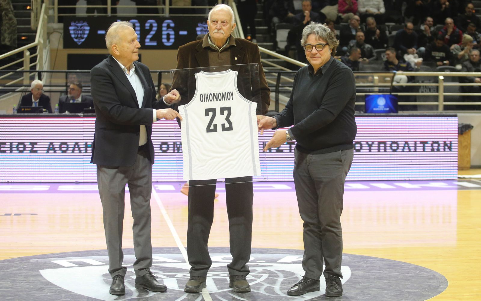 Ο πρόεδρος της ΚΑΕ ΠΑΟΚ Νίκος Βεζυρτζής τον αγκάλιασε και μαζί με τον Διευθύνοντα Σύμβουλο κ.Ιωάννη Πετμεζά τίμησαν το Γιώργο Οικονόμου για την τεράστια προσφορά του στον ΠΑΟΚ. Μία προσφορά που είναι ανεκτίμητη, διότι καταγράφηκε σε εποχές δύσκολες, όταν το μπάσκετ ήταν ακόμη στην αφάνεια, δεν υπήρχε η υπερπροβολή των μέσων κοινωνικής δικτύωσης και οι εικόνες που διασώθηκαν και είναι διαθέσιμες μέχρι σήμερα είναι ελάχιστες.