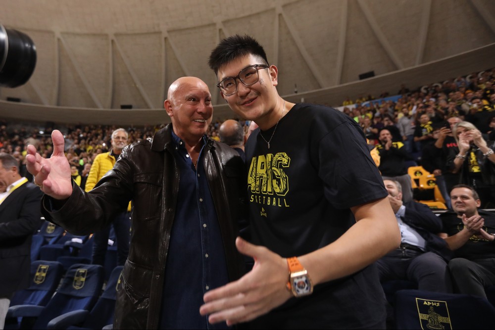 Στις εξέδρες βρίσκεται και ο νέος ιδιοκτήτης του Άρη, Ρίτσαρντ Σιάο, ο οποίος παρακολουθεί για πρώτη φορά από κοντά παιχνίδι της ομάδας του. Ο Μαλαισιανός επιχειρηματίας δείχνει εντυπωσιασμένος από αυτό που ζει αυτή τη στιγμή.