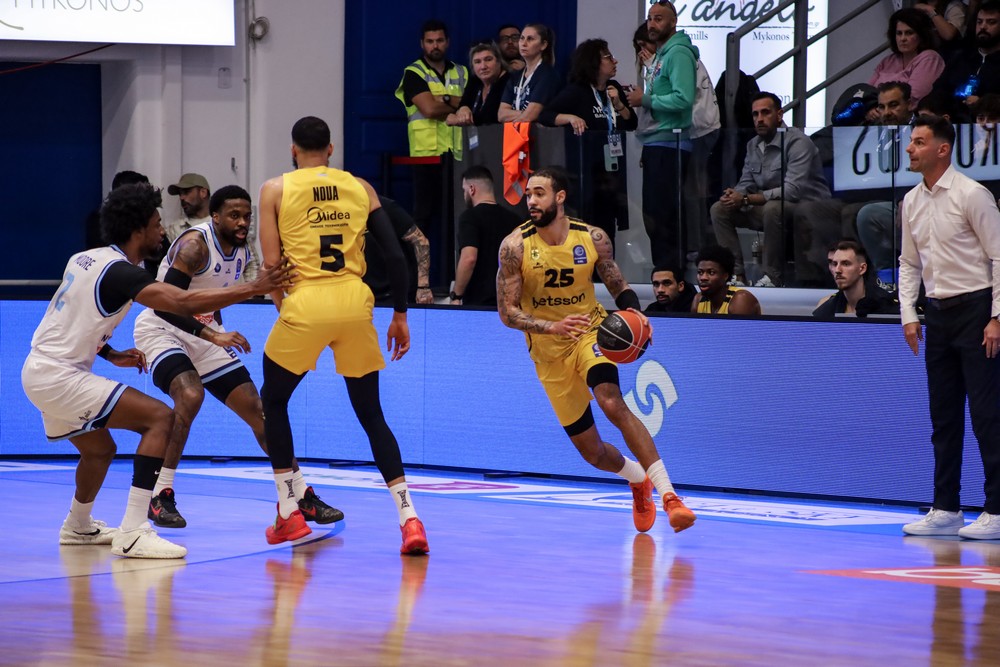 Παρότι η Μύκονος Betsson παρουσιάστηκε ιδιαίτερα ανταγωνιστική και έβαλε δύσκολα στους «κιτρινόμαυρους», ο Άρης Betsson πήρε το σημαντικό διπλό με 74-83.