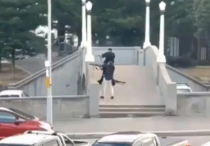 Όπως φαίνεται στο σοκαριστικό βίντεο, οι δύο ένοπλοι ανεβαίνουν σε μια γέφυρα και πυροβολούν εν ψυχρώ οποιονδήποτε έχουν οπτική επαφή. Στην συνέχεια ο ένας κατεβαίνει από την άλλη πλευρά της γέφυρας και κατευθύνεται προς τα αριστερά, όπου συνέχιζε τους πυροβολισμούς.