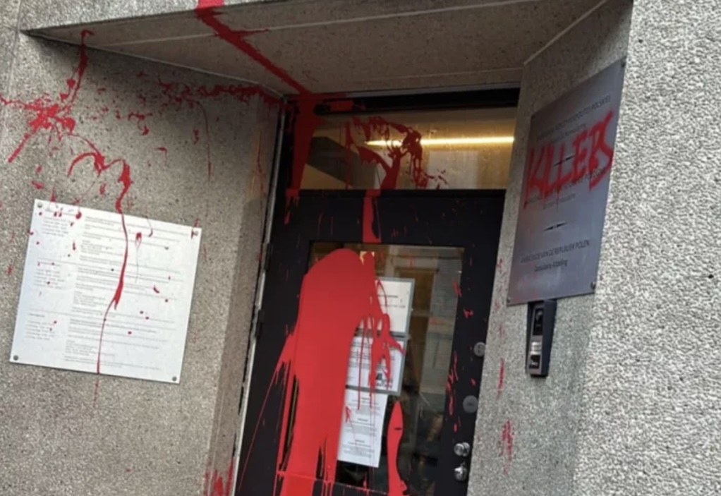 Όπως μετέδωσαν πολωνικά ΜΜΕ, στην είσοδο του προξενείου ρίχτηκε κόκκινη μπογιά και το έμβλημα της Πολωνίας, που είναι τοποθετημένο στο πάνω μέρος της εισόδου, υπέστη επίσης ζημιές.