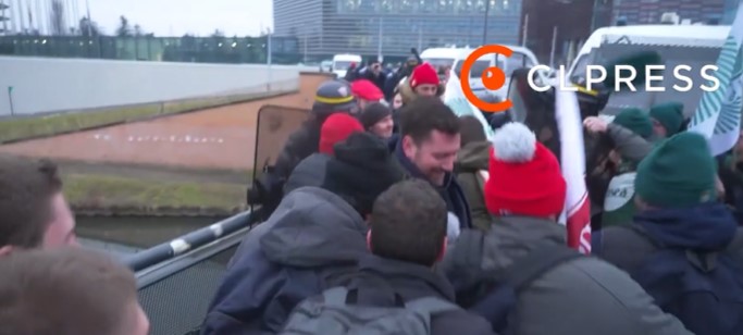 Το απόγευμα το κλίμα ήταν τεταμένο, με τους διαδηλωτές να εκτοξεύουν μπουκάλια και φρούτα στις αστυνομικές δυνάμεις, που απάντησαν με δακρυγόνα.