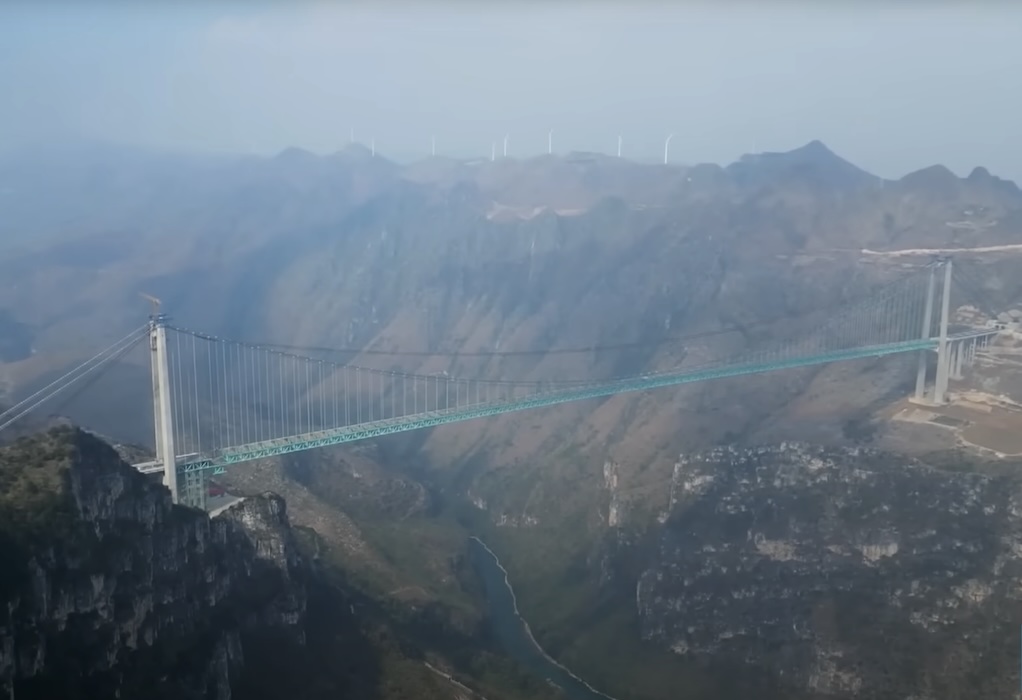 Η γέφυρα Huajiang Grand Canyon, που υψώνεται 625 μέτρα πάνω από τον ποταμό Beipan στο ορεινό έδαφος της Γκουιζού, είναι σχεδόν εννέα φορές ψηλότερη από τη γέφυρα Golden Gate του Σαν Φρανσίσκο.